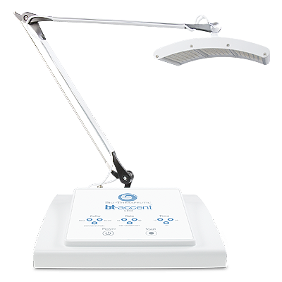 bt-accent™ LED La tecnologia Accent redefinira la manera en que hace sus negocios. El diseno portatil y elegante tiene como objeto integrarse sin esfuerzo en cualquier entorno de servicio. La lampara bt-accent LED tiene 420 luces rojas, azules y combinadas para atender una variedad de opciones de servicio.