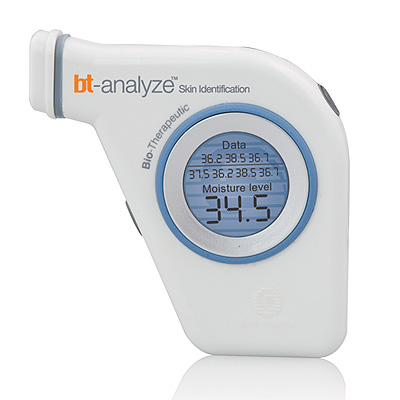 bt-analyze™ Con tecnologia de bioimpedancia y un nuevo y sofisticado sensor de membrana patentado para la piel, el bt-analyze utiliza tecnologia avanzada para calcular los niveles de humedad de la piel. Este dispositivo se usa en multiples zonas de la cara para definir claramente las necesidades de cada area. Cada lectura se guarda y exhibe en la recientemente disenada pantalla LCD inteligente, para que se pueda documentar al final del analisis. Este instrumento da una rapida orientacion cientifica a los clientes y comienza el proceso de convertirlos en participantes activos al entender la funcion de su piel y la necesidad de productos y servicios especificos para lograr sus metas. El bt-analyze se debe usar antes y despues de cada servicio para capturar las mejoras logradas y tomar nota de las modificaciones necesarias.